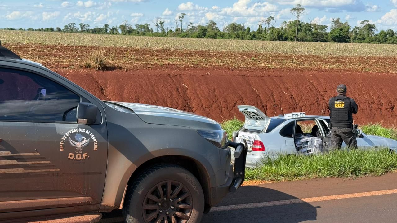 Policiais militares do DOF (Departamento de Operações de Fronteira) apreenderam, nesta segunda-feira (3), na MS-278, em Caarapó, um veículo VW Polo carregado com mil pacotes de cigarros contrabandeados do Paraguai. Na ação, um homem de 36 anos foi preso em flagrante.