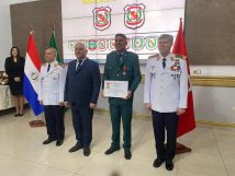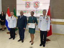 Campo Grande (MS) – Na manhã desta quarta-feira (6/11), na cidade de Asunción, capital do Paraguai, a equipe de mentores do 2º Curso Internacional de Formação de Instrutores do Proerd da PMMS foi agraciada com a Medalha ao Mérito da Polícia Nacional do Paraguai, em reconhecimento ao firme compromisso com o fortalecimento da cooperação bilateral em matéria de segurança, assistência mútua e continuidade do Programa Educacional de Resistência às Drogas e à Violência (Proerd).