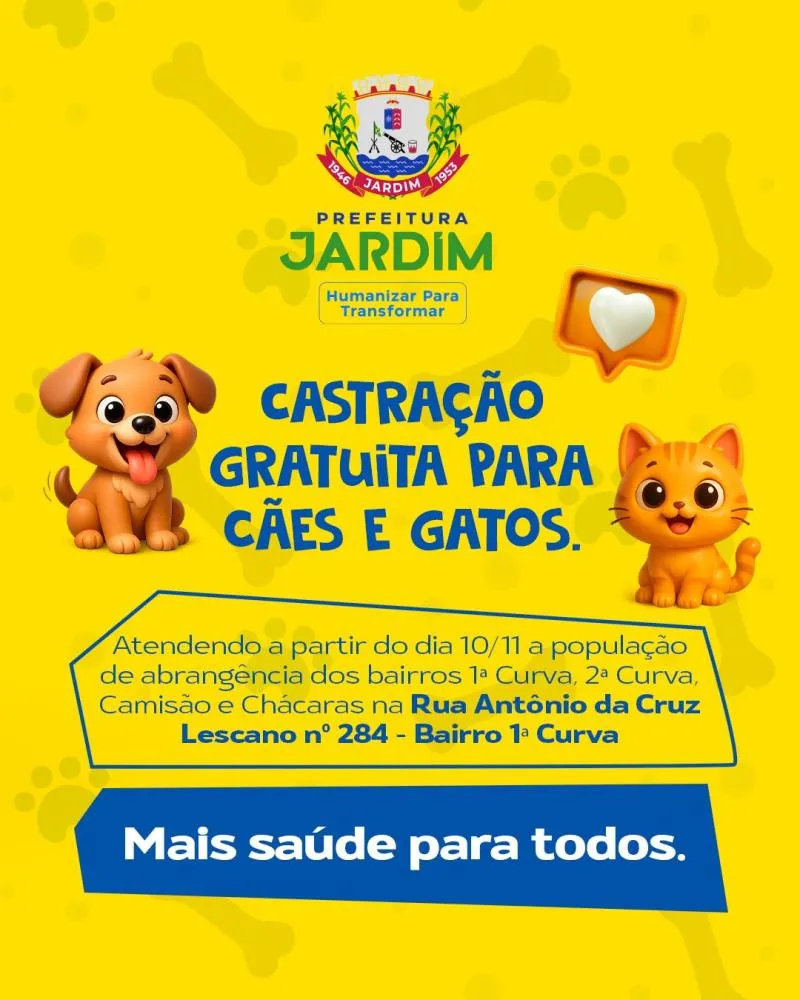 A ação reforça o compromisso da gestão municipal com a saúde pública e o respeito à causa animal, ampliando o alcance dos atendimentos gratuitos e garantindo que cada vez mais famílias tenham acesso ao serviço.