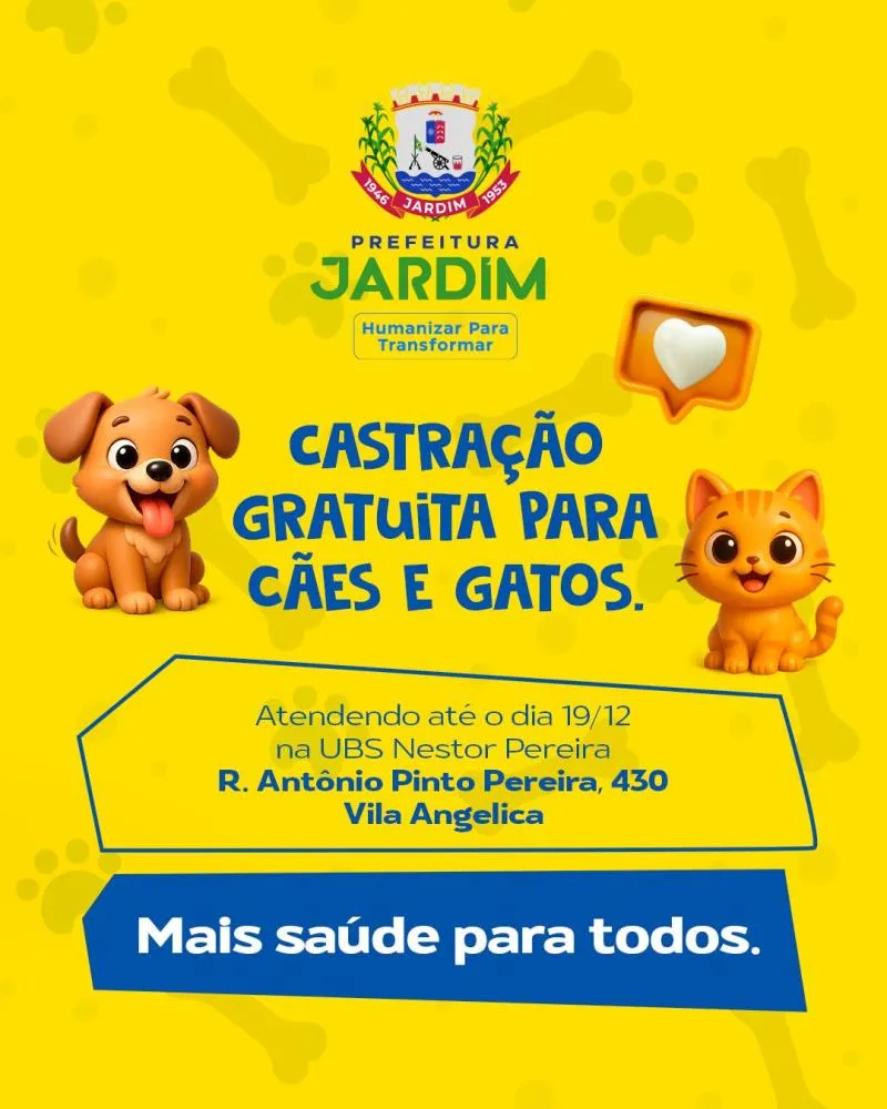 O Castramóvel segue atendendo no município até o dia 19 de dezembro, na UBS Nestor Pereira, localizada na Rua Antônio Pinto Pereira, 430, Vila Angélica, ampliando o acesso da população ao serviço de esterilização gratuita.